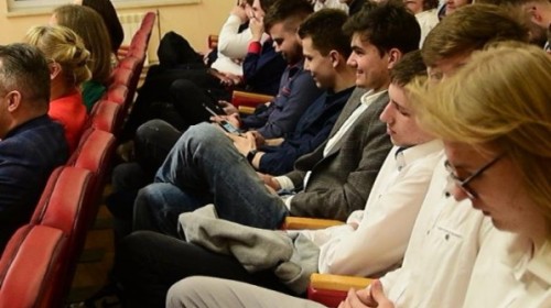 Kolejną częścią konferencji był panel dyskusyjny. Naszą szkołę reprezentowali: Pani Barbara Kadłubicka – doradca zawodowy ZSSiO wraz z uczniami z kl. 5a TPS – Filipem Kaczmarczykiem i Dawidem Kubiesem.