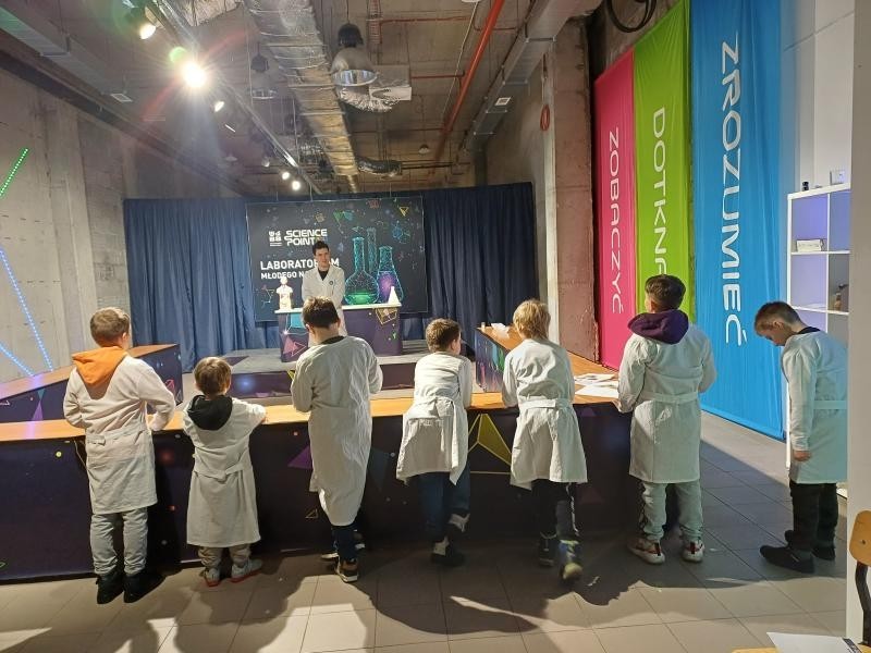 Uczestnicy szkolnego koła SKKT wybrali tematykę medyczną, dotyczącą anatomii człowieka. Odpowiadali celująco na zadawane przez prowadzącego pytania i dowiedzieli się wielu interesujących ciekawostek, np. z ilu kości zbudowany jest szkielet człowieka. Zrobili „rentgena” własnej dłoni i przeprowadzili iście chemiczny eksperyment, pompując balon przy użyciu wody i sody. Następnie skorzystali z informacji naukowych i starali się rozwiązać krzyżówkę w drugiej części ekspozycji „Science Point”.